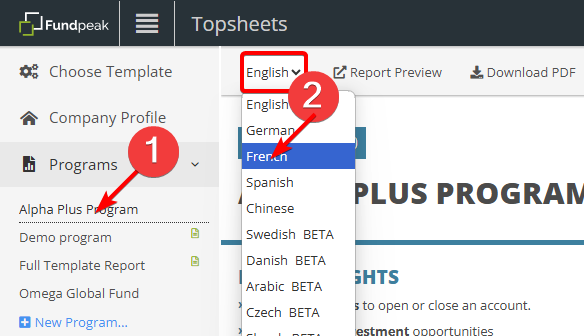 BETA languages are not fully translated, and your feedback is welcome. They are also not enabled by default – if you’d like to use them on your fund factsheets, please contact our support team to have them activated.